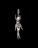 Charm depicting a rooted being growing petals. Hand sculptured in wax, cast into metal, and finished by hand.