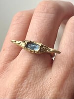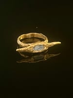 A unique piece and continuation of the Grotto series, this bronze ring was hand sculpt from wax, cast into metal with a pale-blue toned zirconia and finished by hand. This ring can be gold-plated by request.