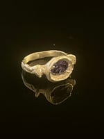 A unique piece and continuation of the Grotto series, this sterling silver ring was hand sculpt from wax, cast into metal with a purple and blue toned zirconia and finished by hand.