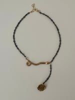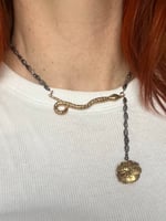 The necklace measures: 36cm with a chain extender up to 39cm. All findings are gold-filled brass. Flower and snake charms are cast in bronze.