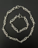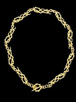A protective tangle of thorns to coil around your neck or wrist. Each link has been hand sculptured in wax, cast, and finished by hand. Fastens with handmade t-bar closure, which can be worn at the front or back.
